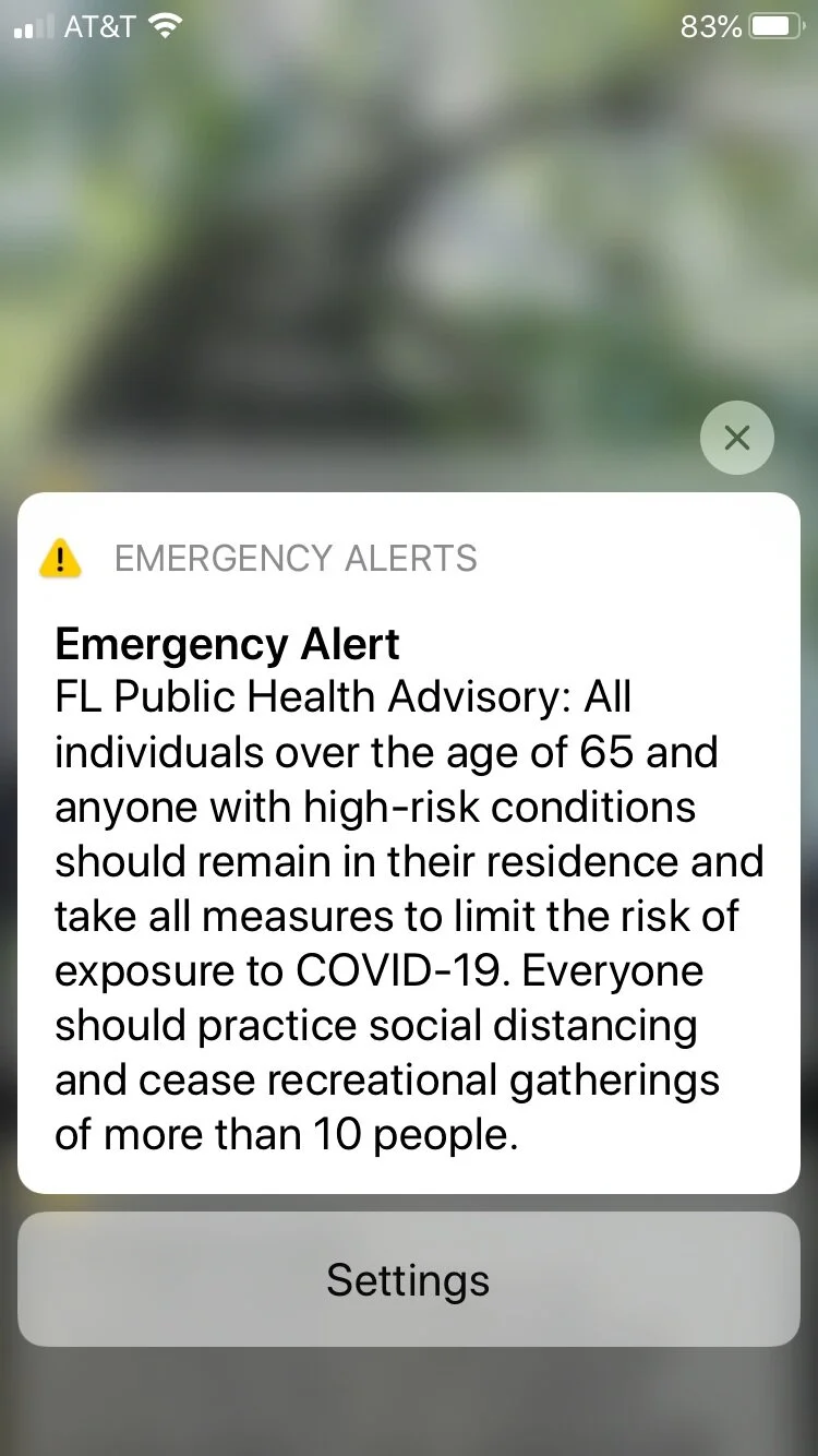 Emergency Alerts no longer appear for Amber and Silver but from FL Department of Public Health. They still scare the hell out of me every time they sound.